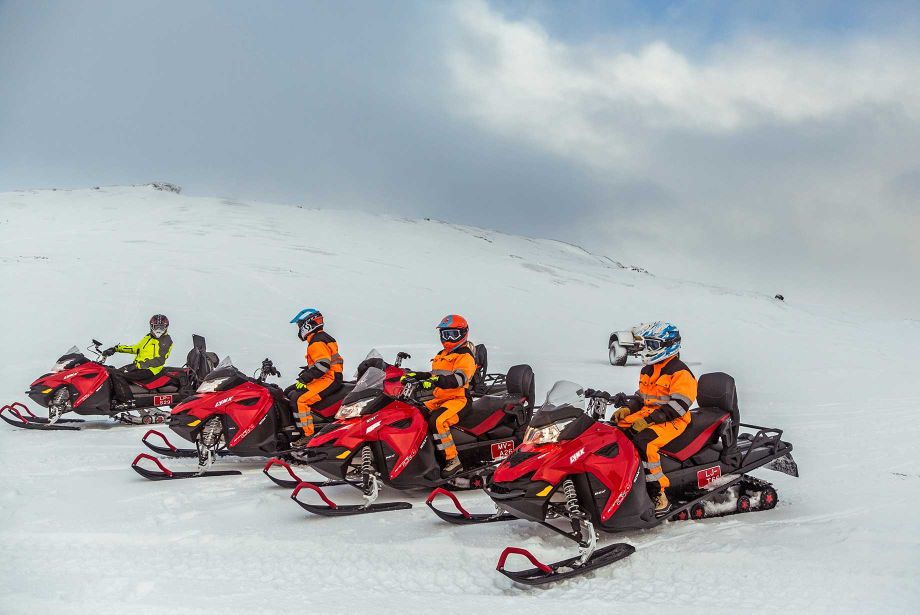 Conduce a través de la nieve con vistas impresionantes desde lo alto de un glaciar. Un tour en moto de nieve es una actividad popular en Islandia, tanto entre los locales como entre los viajeros.